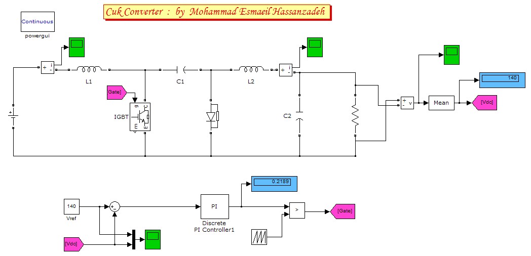 آموزش شبیه سازی مبدل کاهنده افزاینده Cuk و کنترل ولتاژ خروجی با استفاده از کنترل کننده PI