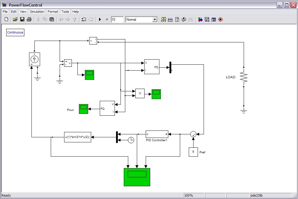 در اینحا از یک کنترل کننده PI برای کنترل توان استفاده شده است.قابل توجه است که مقادیر کنترل کننده برای این توان رفرنس تنظیم شده است. اگر توان رفرنس را تغییر دهیم باید دوبار ضرایب کنترل کننده را تنظیم کنیم