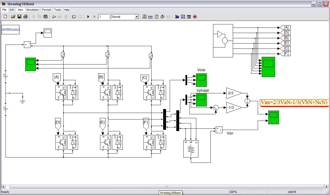 شبیه سازی اینورتر سه فاز با هدایت 180 درجه